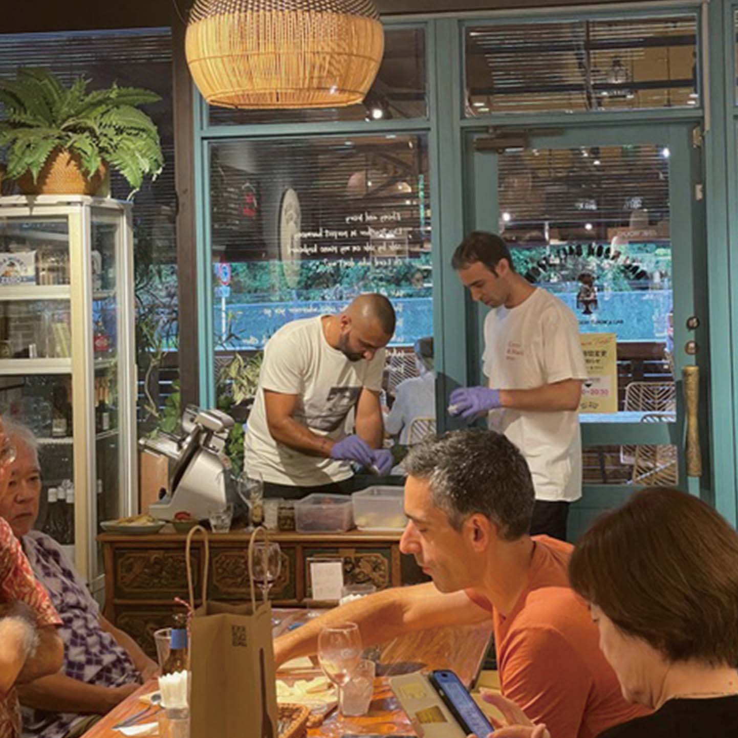 入手困難な食材を探し、小さなキッチンで冗談を言いながら