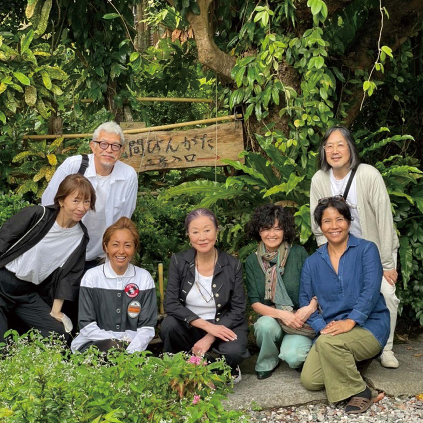 かつての同僚たちが年月を越えて出会い、先生を取り囲んでいる。