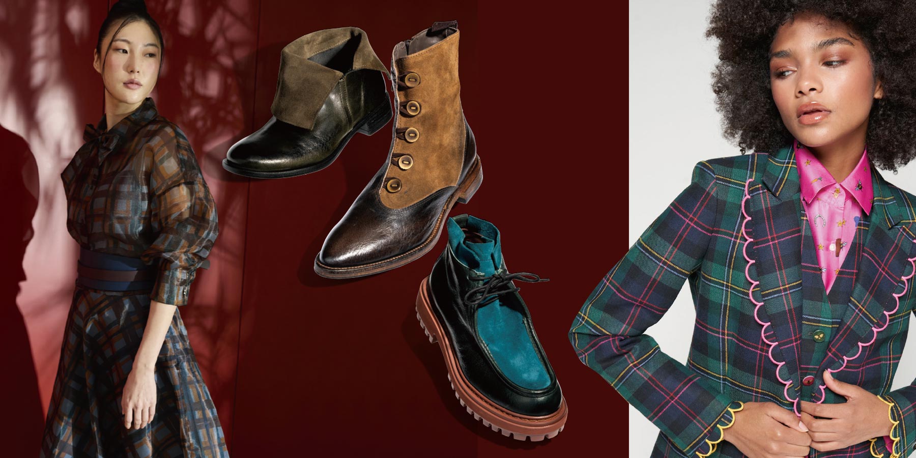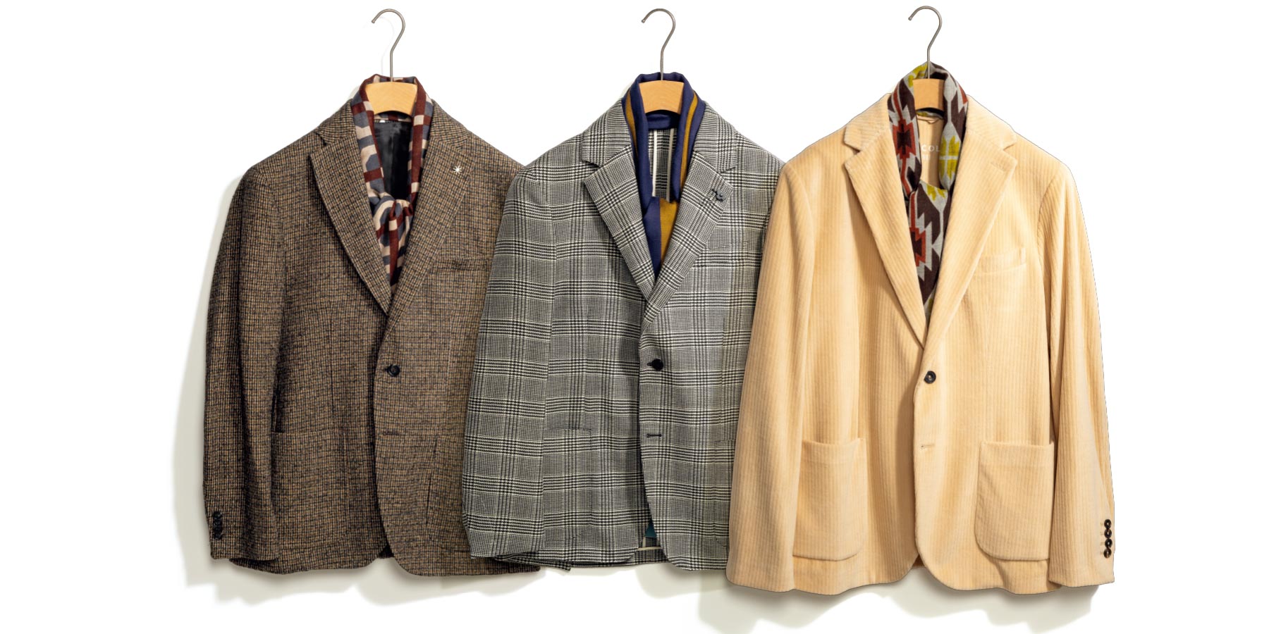 クラシカルなテーラリングをベースに鮮やかな色彩とユーモアあふれるプリントを融合させたデザイン。今季イチ押しアイテムのタータンチェックジャケットはネオンカラーのトリミングがアクセント。