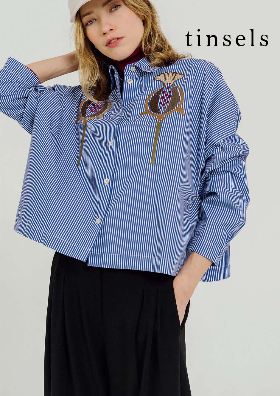 "「小さなきらめき(tinsel)」のように、さりげないけど力強い“本質”を大事に、「ティンセルス」と名づけました。私にとって服とは、ただのモノではなく、人生を共に歩む「パートナー」のような存在。どのアイテムも、季節を超えて長く着られる、永く愛される“定番”となることを目指してデザインしています。
